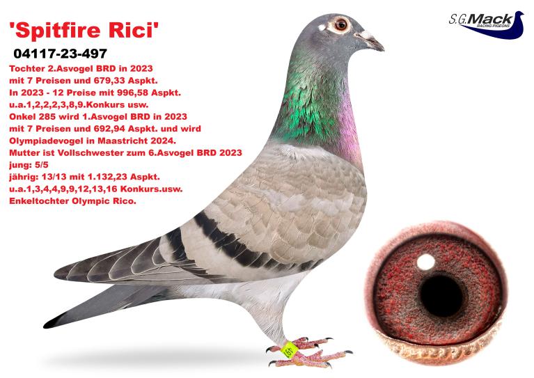 Mutter ist Vollschwester zum 6.Asvogel BRD 2023. Enkeltochter Olympic Rico